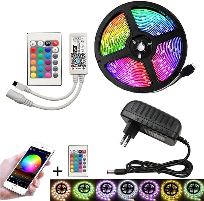 Luces Led Controlada Por La App Del Telefono Inteligente De Bluetooth Es Adecuada Para El Sistema De Android Y El De Ios El Conjunto De Equipo Rgb 5 Metros Tira Led La 12v3a