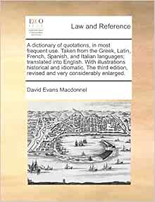 A Dictionary Of Quotations In Most Frequent Use Taken From The Greek Latin French Spanish And Italian Languages Translated Into English With Illustrations Historical And Idiomatic Macdonnel David Evans 9781140833109 Amazon Com Books