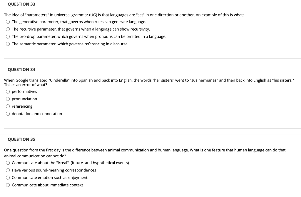 Solved Question 33 The Idea Of Parameters In Universal Chegg Com