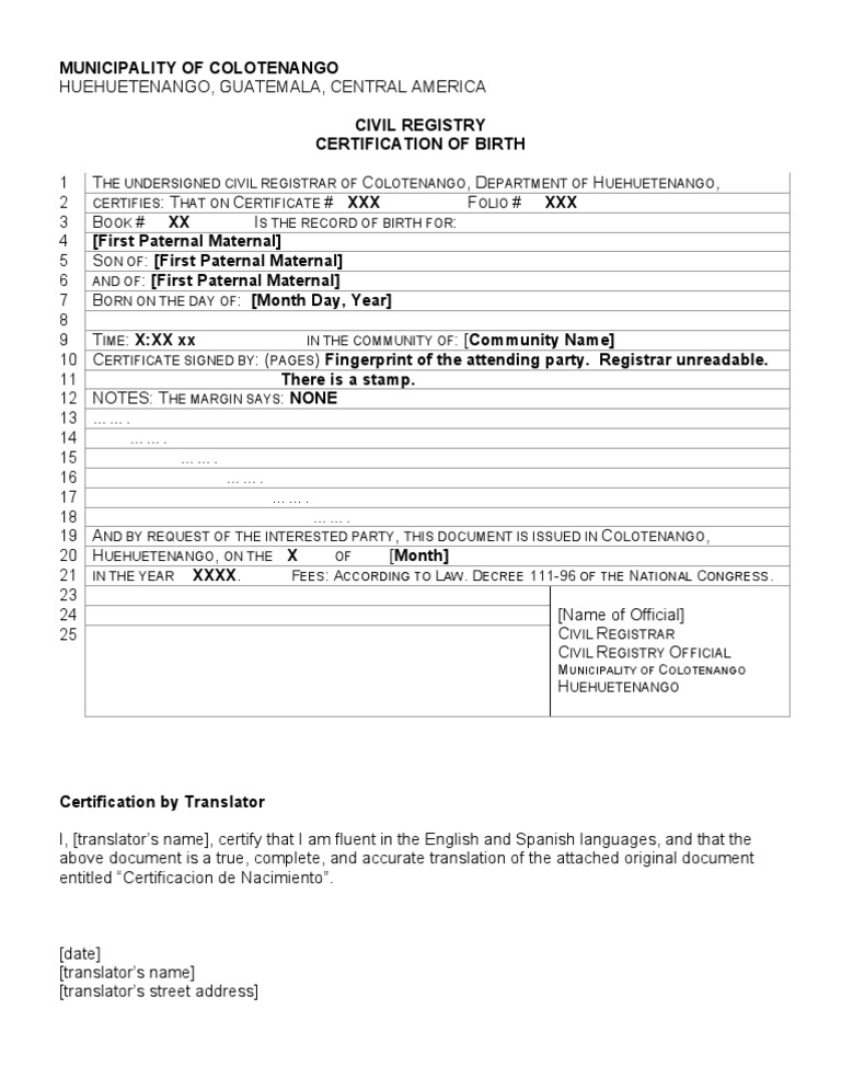 Birth Certificate Guatemala Tranlanguage Certified Translations