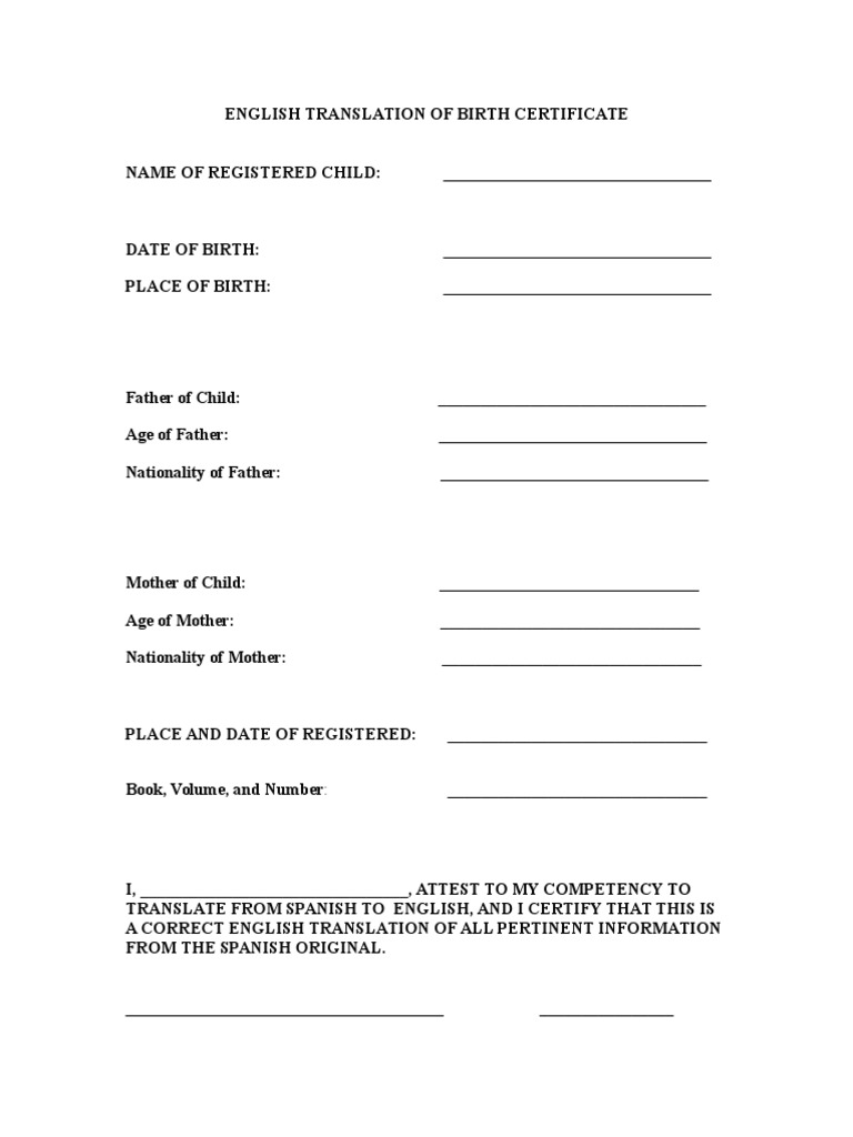 Translate Birth Certificate From Spanish To English Form Best Of Certificate Translation Template Birth Translate To Models Form Ideas