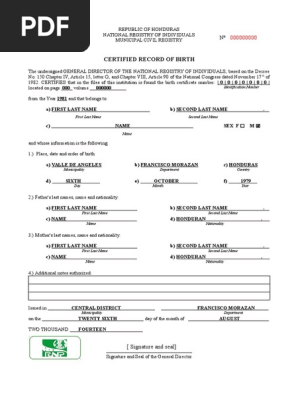 321622800 233509397 English Translation Of A Birth Certificate From Honduras Pdf 3 Pdf Birth Certificate Written Communication