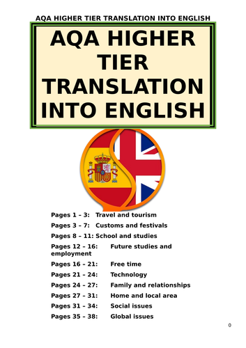 Aqa Gcse Spanish Translation Practice Booklet Into English For The New 9 1 Specification Teaching Resources